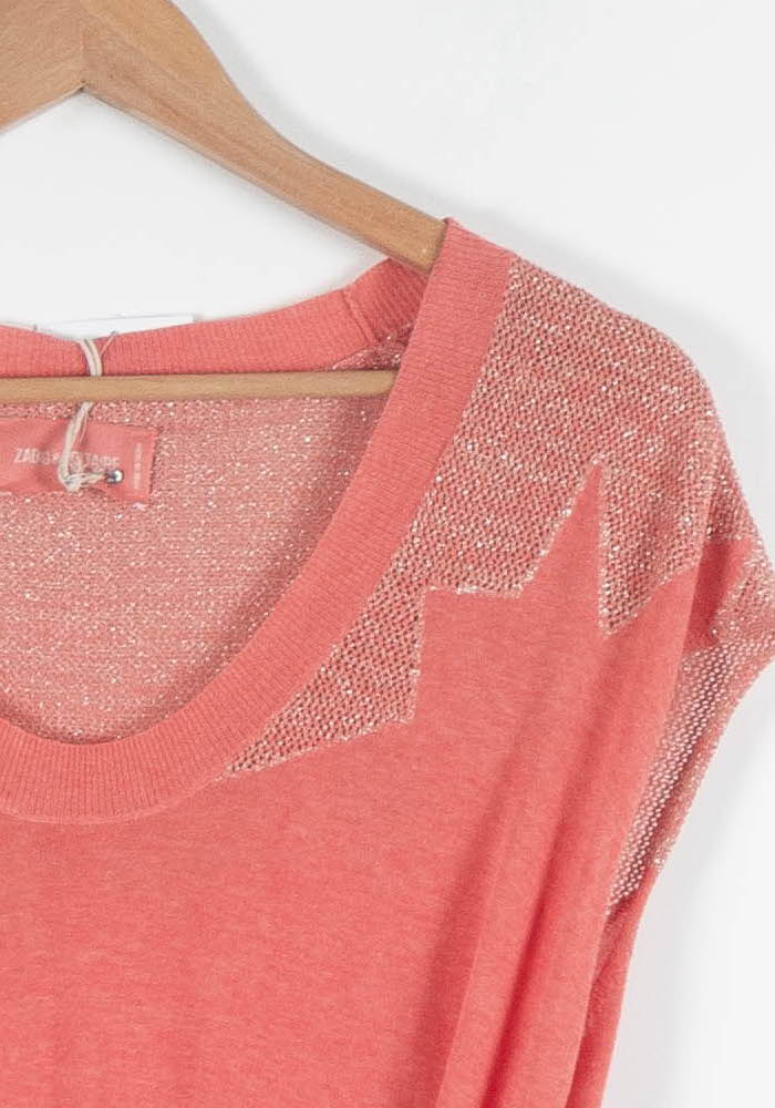 Robe orange Zadig&Voltaire taille XS/34, à la coupe droite et ceinture assortie à nouer à la taille. Le tissu semble fluide avec des détails pailletés argentés aux épaules, apportant une touche d’éclat et d’originalité au modèle. Idéale pour une sortie estivale ou un dîner élégant entre amis.
