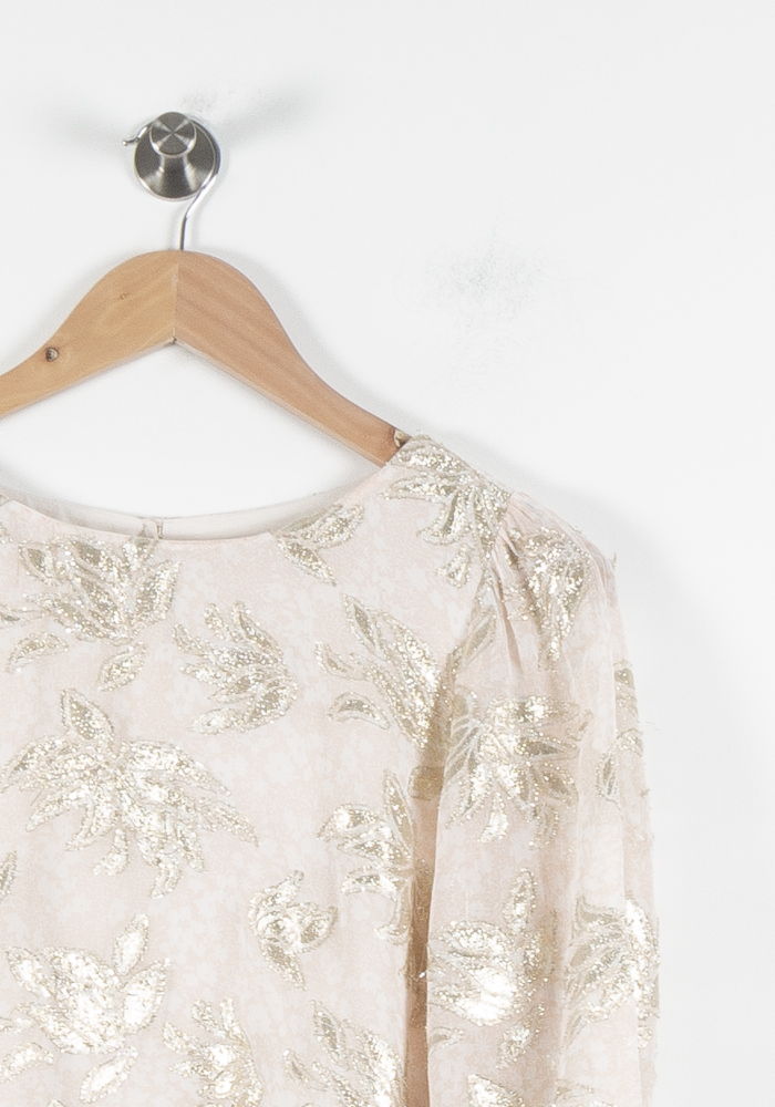 Robe rose Maison 123, taille L/40, élégante et féminine, mettant à l’honneur une coupe droite rehaussée de manches trois-quarts. Sa matière principale, composée à 90% de viscose et 10% de fibres métallisées, confère à la robe des reflets lumineux dorés et un toucher doux, tandis que la doublure 100% viscose assure un confort optimal ; le motif floral argenté apporte une touche sophistiquée et festive à l’ensemble. Idéale pour une cérémonie, un cocktail ou toute occasion spéciale nécessitant une tenue raffinée.