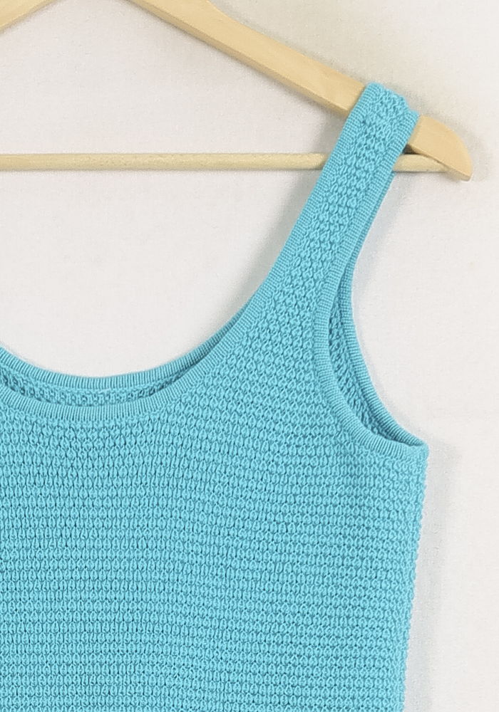 Robe bleu sans manches Ines de la Fressange Paris, taille S/36, au style épuré et moderne. Confectionnée dans une maille texturée, cette robe offre une allure à la fois décontractée et sophistiquée, mettant en valeur un savoir-faire soigné et des finitions nettes qui la rendent unique. Idéale pour une journée estivale ou une sortie élégante en bord de mer.