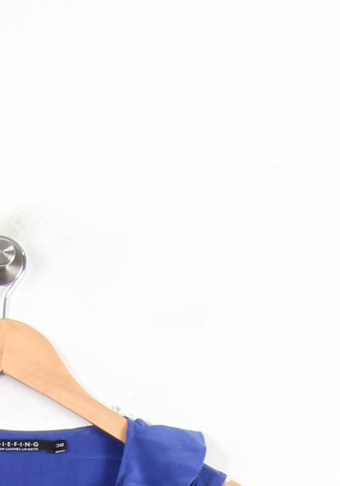 Robe sans manches bleu vif Galeries Lafayette, taille M/38, dotée d'un col original à volants. Cette pièce se distingue par sa matière fluide qui apporte une élégante légèreté, tandis que les volants au niveau de l’encolure offrent une touche raffinée et féminine. Parfaite pour un cocktail estival ou une sortie élégante en journée.