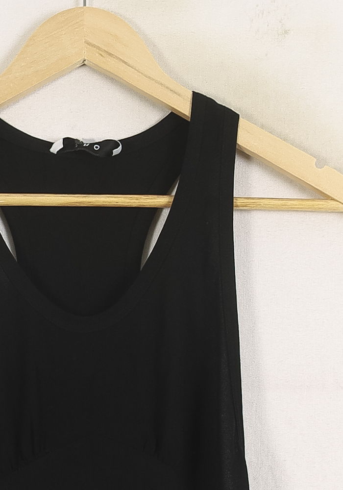 Robe noire IRO, taille S/36, élégante et fluide avec finition volantée sur le bas. Confectionnée dans une matière légère offrant un joli tombé, cette robe se distingue par sa coupe décontractée et ses larges bretelles, ainsi que son ourlet asymétrique rehaussé de volants apportant une note féminine. Idéale pour une soirée estivale ou un cocktail raffiné.