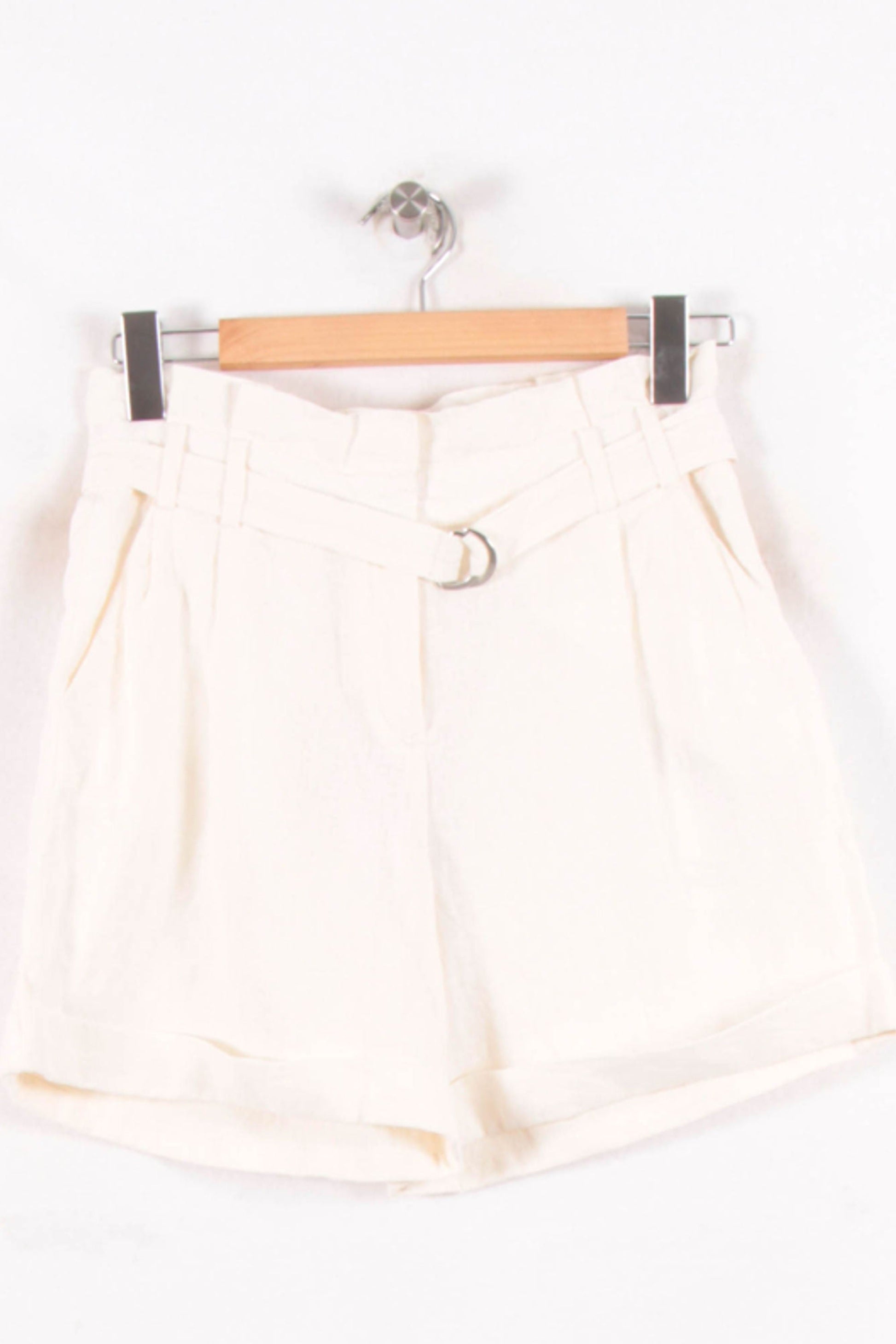 Short blanc ceinturé Maison 123, taille S/36 – un incontournable de la collection estivale de la marque Maison 123. La finition d'un matériau orné d'une boucle métallique et d'un treillis confère au modèle un aspect parfait et élégant, préservant tout son charme. Parfait pour une journée en ville ou une escapade décontractée lors des belles journées d'été.