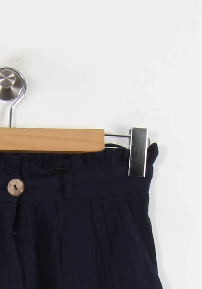 Short bleu Bizance, taille S/36, élégance estivale et allure décontractée. La finition du tissu repose sur un aspect texturé, caractérisé par une taille haute, un fini naturel et un toucher naturel. Idéal pour une promenade par une journée ensoleillée.