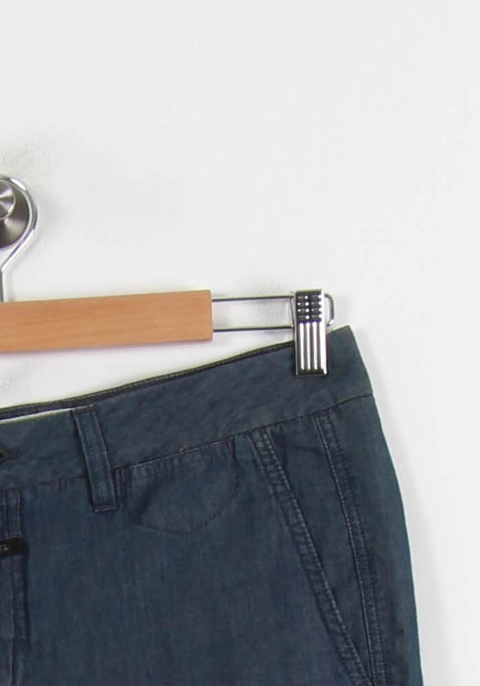 Short bleu fermé, taille XL/42, avec un style épuré et une coupe élégante, idéal pour un look décontracté et contemporain. La préparation de la matière première et de sa résistance, la distinction entre les finitions finales, les écarts latéraux ultérieurs et le passage de la bande transporteuse, sont très efficaces et fonctionnels. Ce court sera parfait pour une promenade estivale en ville ou une journée de détente en bord de mer.