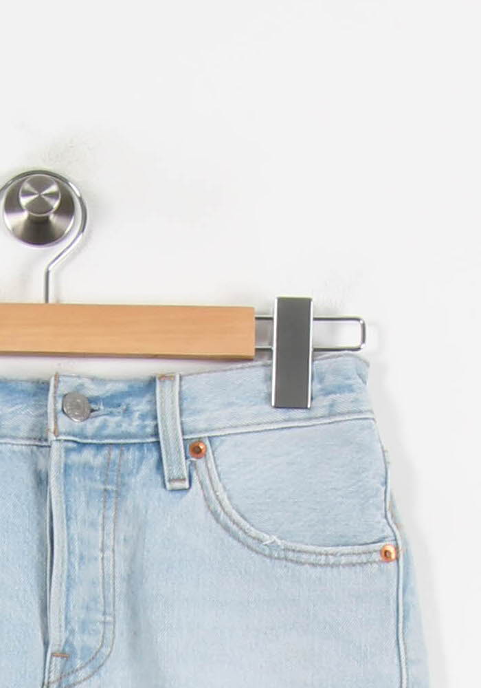 Short en jean bleu Levi's XS/34, coupe classique avec finitions effilées pour un style décontracté. Confectionné en denim de coton bleu clair, ce short présente des bords bruts, des rivets métalliques et une taille haute, offrant à la fois durabilité et une touche contemporaine unique à la pièce. Idéal pour une journée estivale en ville ou une sortie décontractée entre amis.