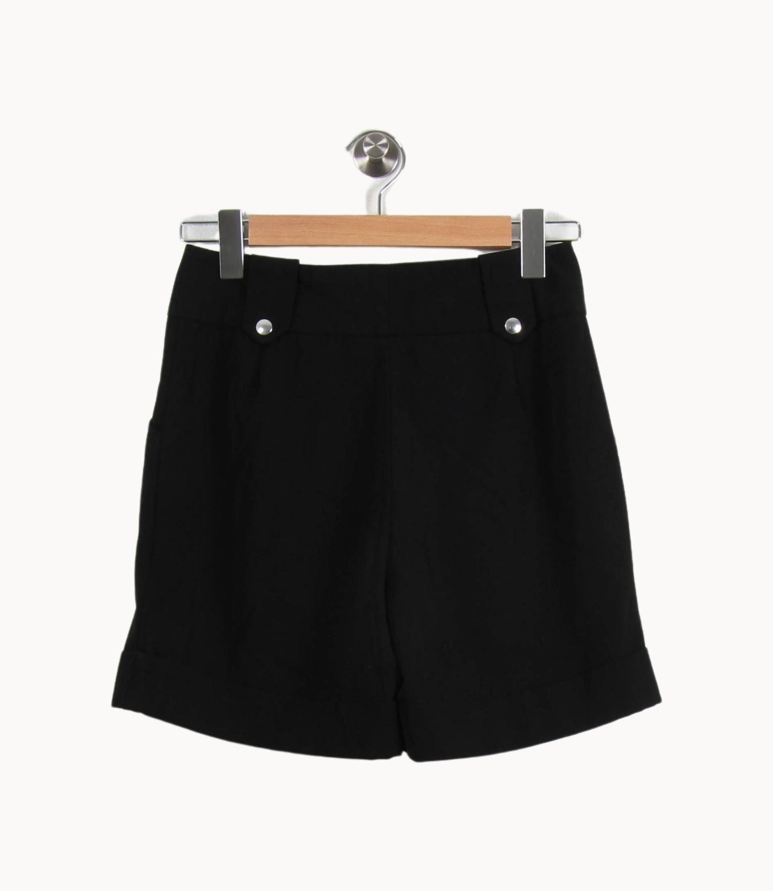 Short noir Caroll, taille S/36, alliant élégance et simplicité pour une silhouette moderne et sophistiquée. Confectionné dans une matière lisse et légèrement structurée, doté de poches sur les côtés et de boutons décoratifs à la taille, il se distingue par sa coupe intemporelle et ses finitions soignées. Parfait pour une sortie citadine estivale ou un déjeuner en terrasse, ce short s’adapte à toutes vos envies de style.