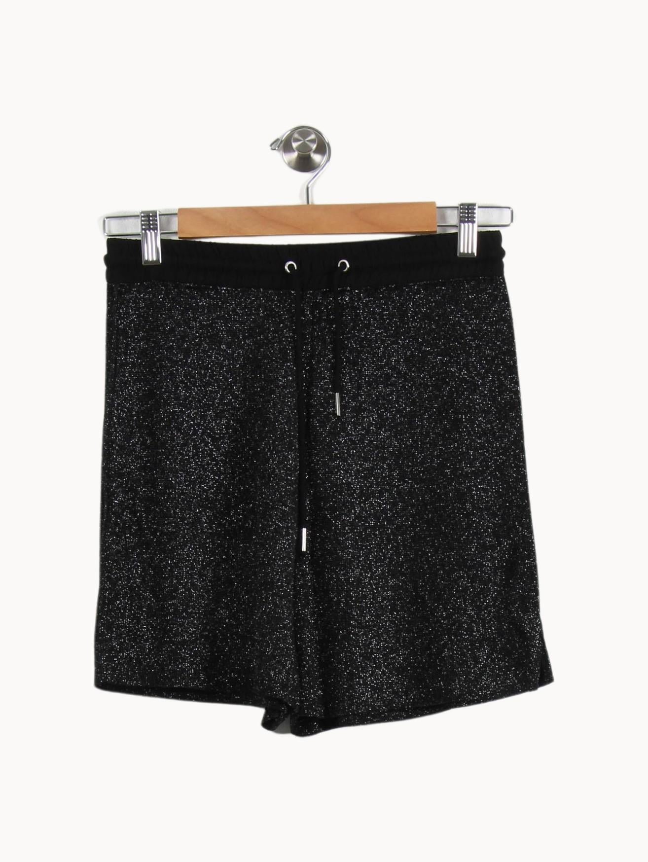 Short noir Sandro taille S/36, raffiné et moderne, parfait pour une garde-robe élégante. Les confiseries sont fabriquées à partir d'une matière première à la finition brillante, les shorts se distinguent par leur élastiquée avec un cordon de liqueurs métalliques, avec une originalité attrayante et une sophistication séduisante. Idéal pour un look décontracté ou une tenue chic après le travail, à associer avec un chemisier fluide et des sandales hautes.