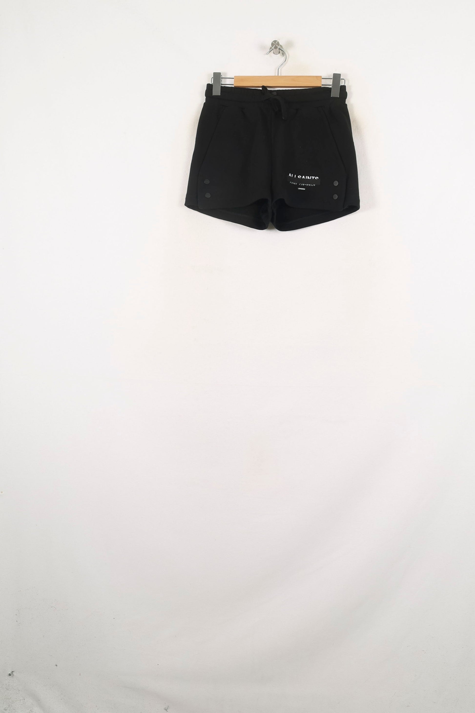 Short noir All Saints, taille XS/34, coupe courte et décontractée, avec logo imprimé sur le devant. Les confiseries sont confectionnées dans un matériau durable, avec un design distinctif pour les couches latérales et des éléments décoratifs, offrant une touche de modernité tout en conservant des éléments essentiels. Idéal pour un long voyage dans la vie ou pour une mission ponctuelle pendant un contrat.