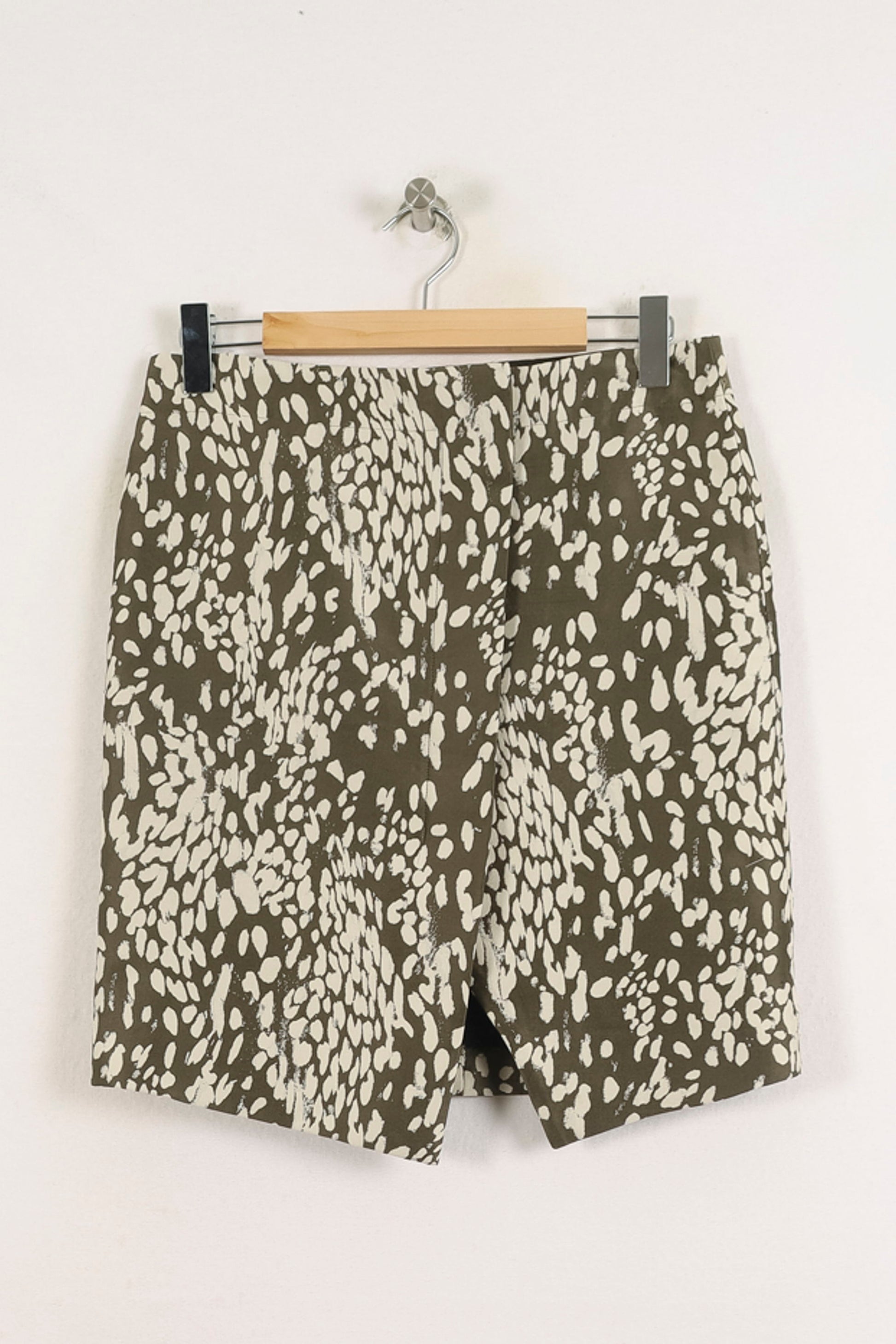 Jupe courte imprimée ver à motifs abstraits, taille L/40, de la marque Gérard Darel. La confiserie repose sur une matière et une structure, fruits d'une conception originale qui met en valeur les nuances de la clarté, avec une touche graphique et de modernité. Idéal pour une journée d'excursion avec un déjeuner en terrasse, toutes les commodités sont réunies pour un look raffiné et soigné.