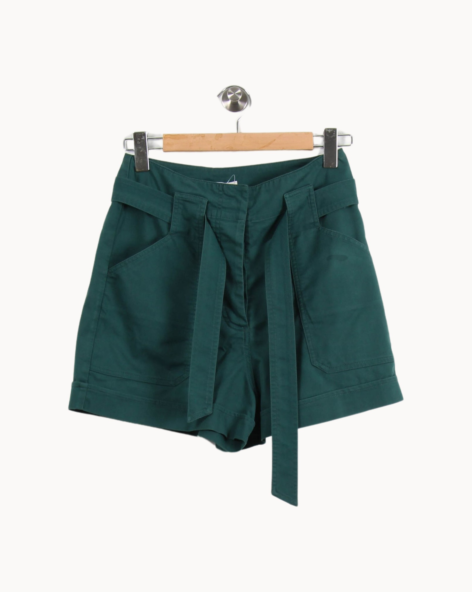 Short Sessùn ver taille S/36, conçu pour un teint élégant et moderne, parfait pour une silhouette féminine et contractée. Le choix d'une nouvelle ceinture ornée de grandes plaques, le design des différentes finitions selon les matériaux utilisés, alliant confort et originalité dans la tenue. Idéale pour une promenade en plein air ou un déjeuner en terrasse, elle s'adapte au style décontracté chic.