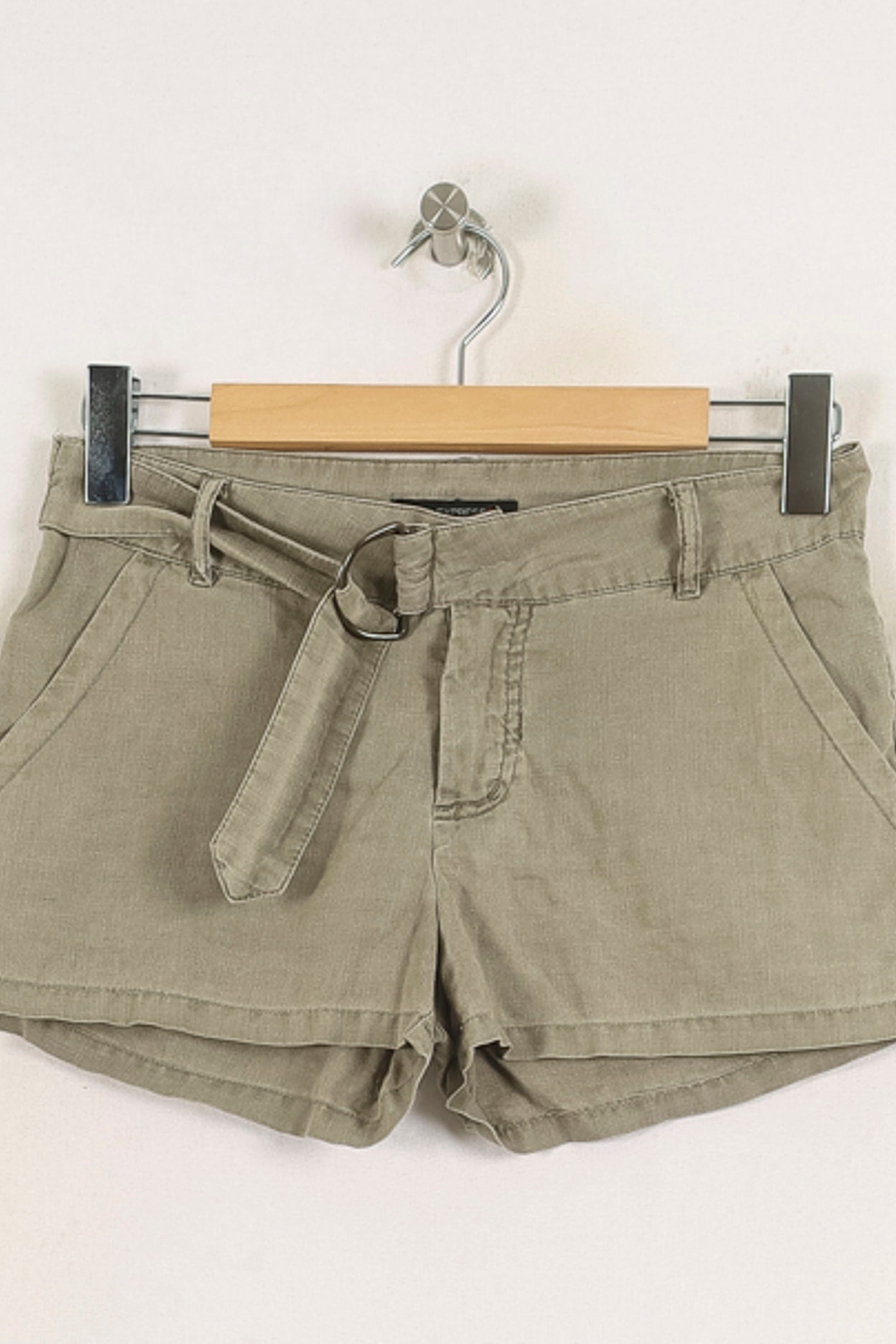Short vert taille S/36 Sud Express, avec une coupe élégante et une ceinture assortie en boucle métallique. La production d'une matière première et d'un matériau naturel, la présence d'un fluide funéraire et les divergences finales, l'âme de l'élégance du contrat et l'application originale de la ceinture. Idéal pour une escapade citadine estivale ou un après-midi détente en terrasse.