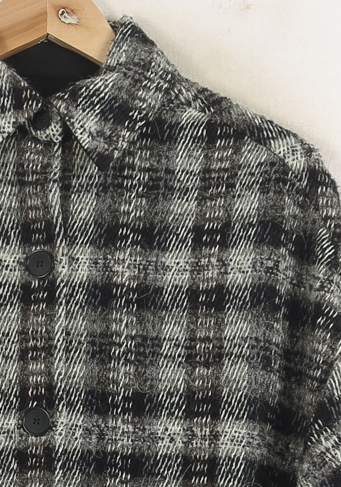 Manteau à carreaux multicolore IRO, taille S/36, au style oversize et décontracté. La réalisation d'une matière finie, une présentation d'un motif dans un style noir et gris, deux poches à rabat sur la poitrine et une fermeture boutonnée, conférant à la pièce un caractère à la fois moderne et intemporel. C'est la meilleure façon de régler votre devis lors de votre rendez-vous contractuel.