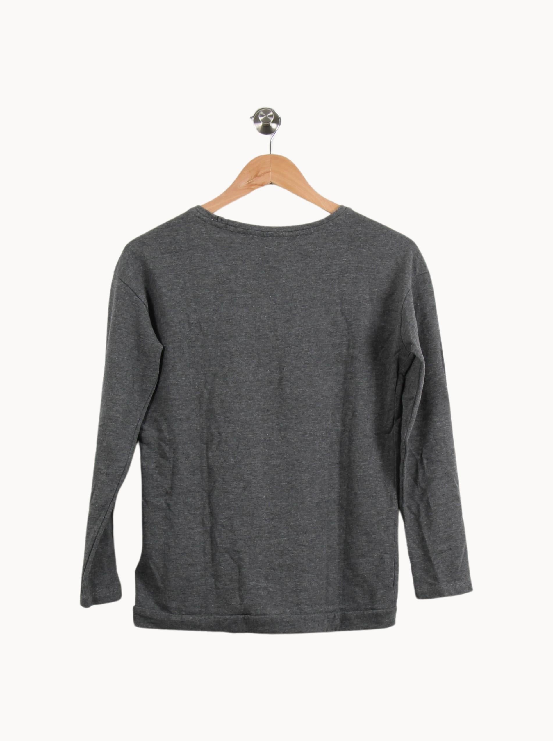 Pull gris Caroll "New York Downtown", taille S/36, pour une allure urbaine et moderne. Confectionné dans une maille légère et agréable, il se distingue par son imprimé central orné de petites touches métallisées, apportant une touche dynamique et tendance à la pièce. Idéal pour une journée de détente en ville ou une sortie décontractée entre amis.