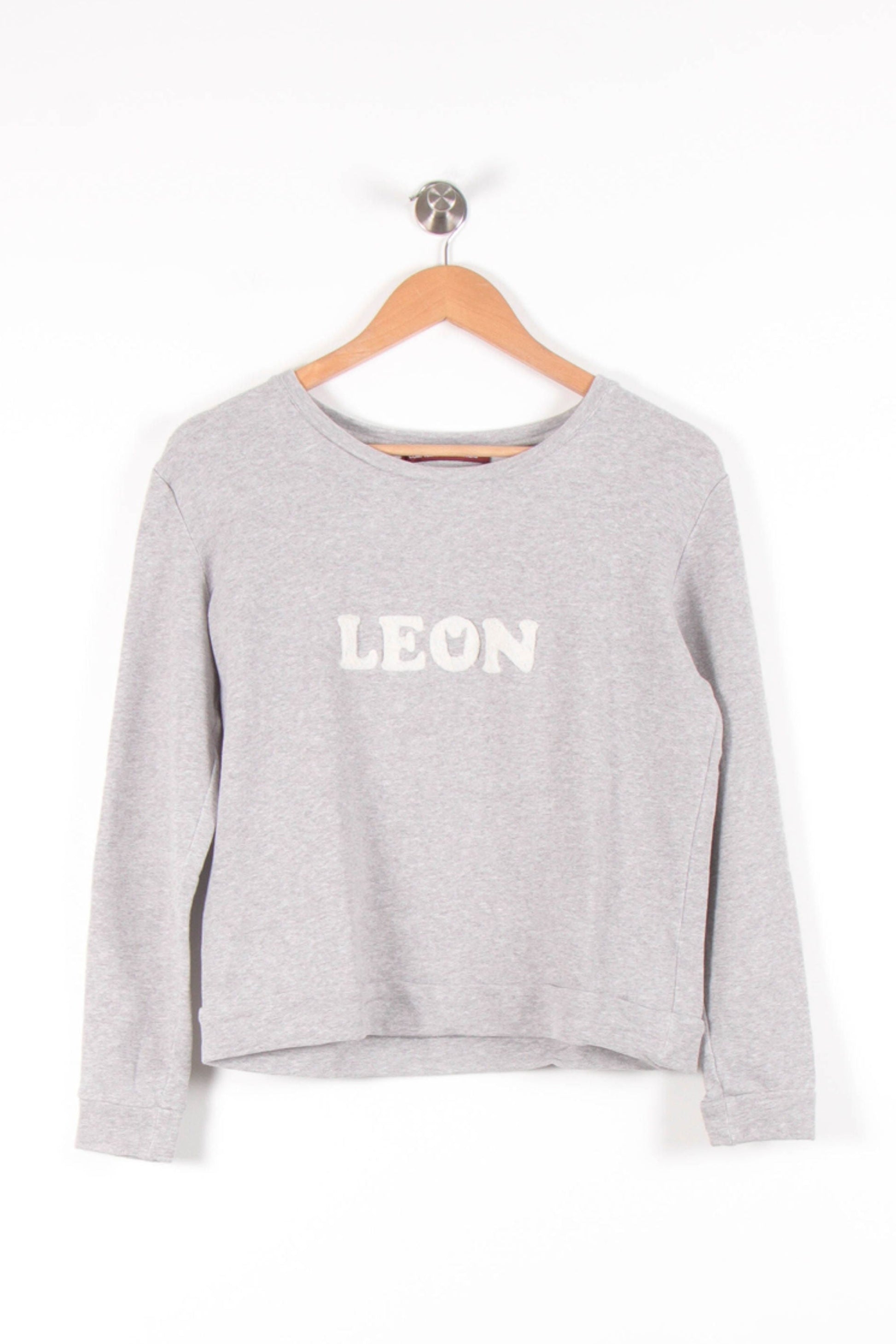 Pull gris Comptoir des Cotonniers taille S/36, arborant avec l'inscription « LEON » et lettres contrastées sur le devant. Confectionné dans une matière confortable et agréable au toucher, avec un design simple et élégant et un motif en relief, il se prête également à une touche graphique originale. Parfait pour une journée de travail sur un chantier, à associer avec un jean ou un pantalon décontracté pour un look urbain.