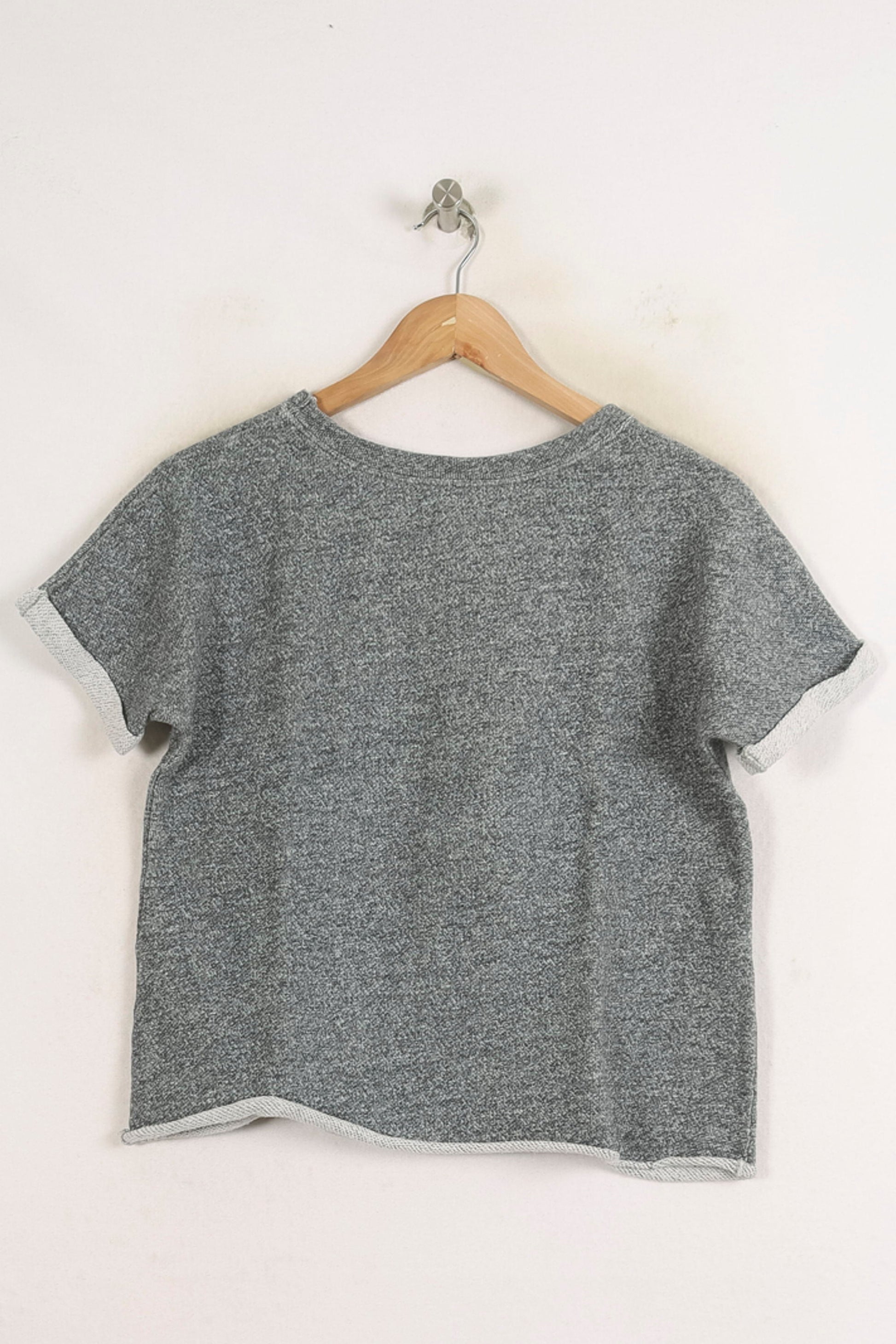Pull gris Sandro taille M/38, avec une élégante incrustation de dentelle noire sur le devant, apportant raffinement et modernité avec une revisite basique. Une confiserie avec une pluie de mailles, la présentation des mains sur les revers et une touche finale à la française, avec la touche finale et une touche unique de sophistication. Idéal pour un contrat journalier avec un jeune adulte, à associer à un jean et des baskets blanches pour un look chic et décontracté.