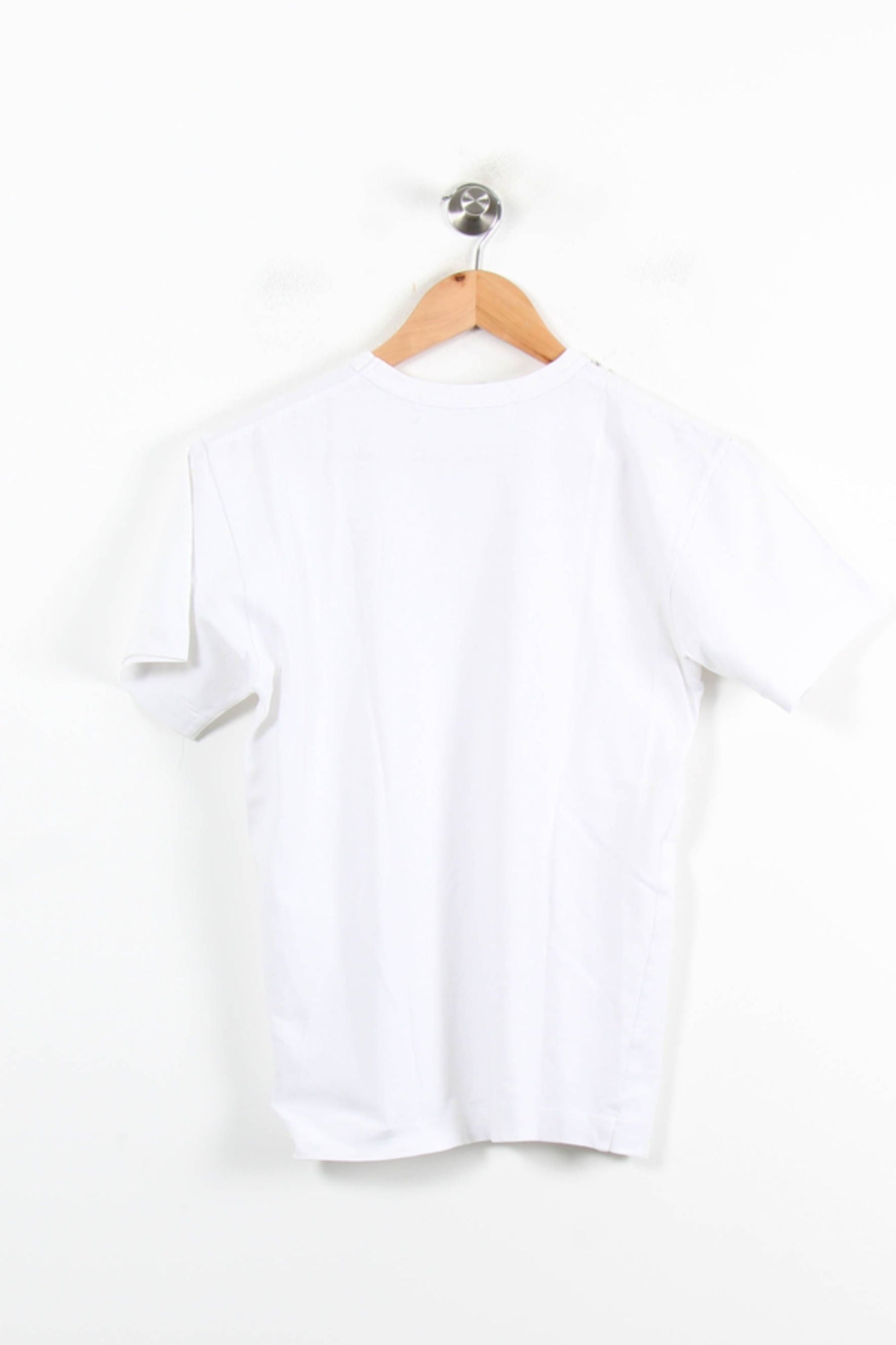 T-shirt Comme des Garçons Play blanc, taille S/36, avec logo cœur rouge brodé sur la poitrine, catégorie hauts. Confectionné dans une matière aux finitions soignées, ce t-shirt se distingue par sa coupe élégante et l'icône détaillée de la couleur, emblème signature de la marque, lui conférant une touche de style original. Ce t-shirt est adapté à une tenue décontractée pour une sortie en ville ou un rendez-vous entre deux.