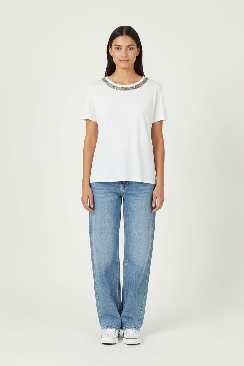 Top blanc The Kooples et taille S/36, doté d'un col rond orné de broderies métalliques raffinées. Confectionné en toile de jute et à 24 % en lin, le haut est réalisé dans la même matière que le tissu, les broderies et les fibres métalliques ajoutent une touche d'élégance et de sophistication à l'ensemble. Idéal pour une soirée chic ou une occasion décontractée, pour allier élégance et confort.