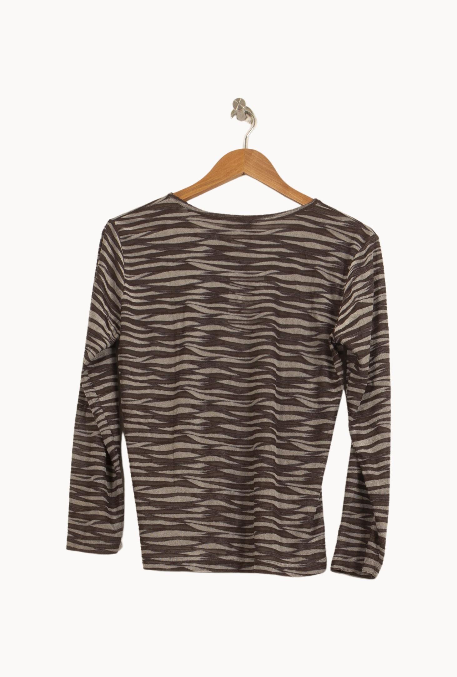 T-shirt Manches Longues Marron et Beige - Taille XL/42