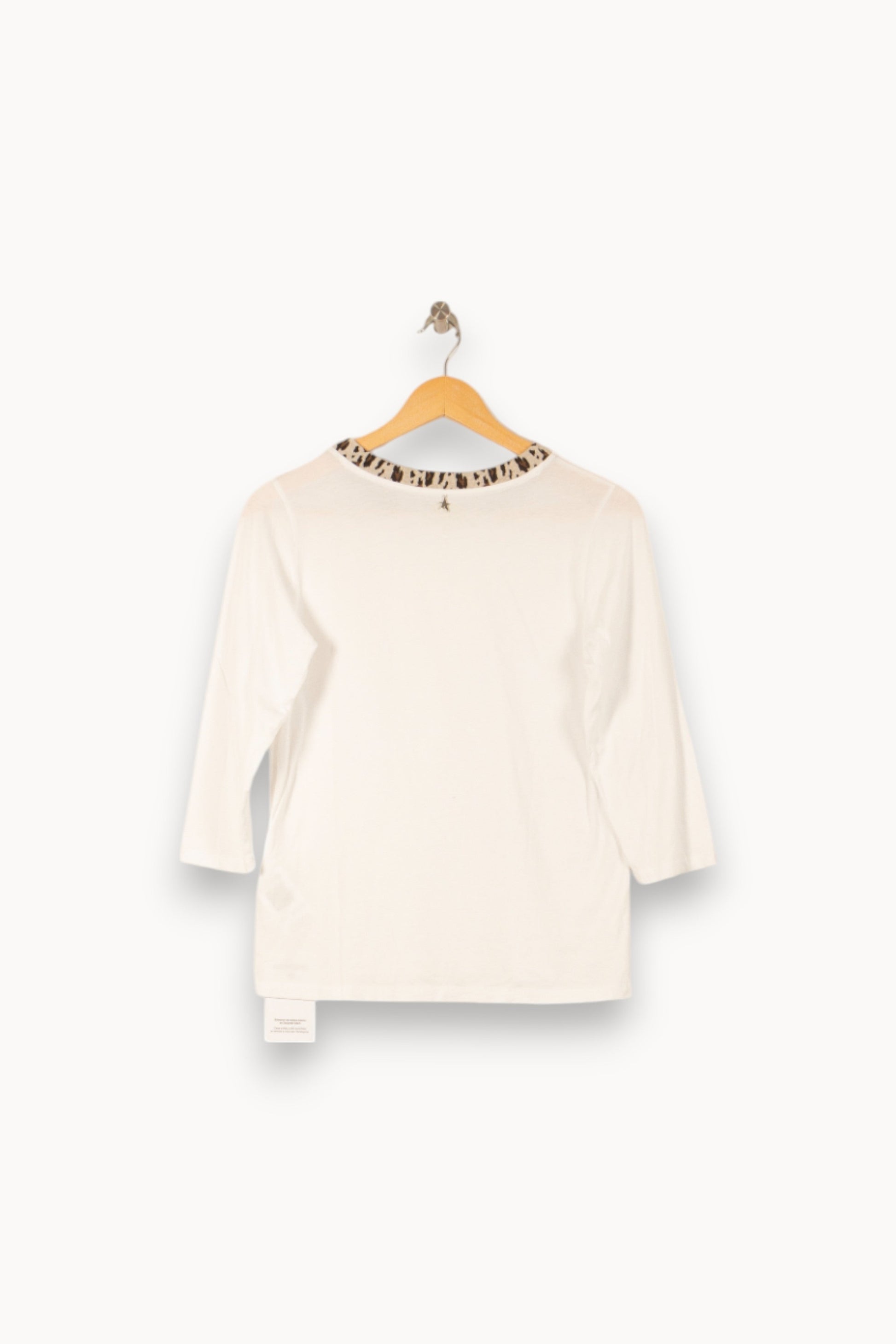 Top blanc Sud express en taille S/36, à manches longues et col rond rehaussé d’un imprimé contrastant, alliant élégance et simplicité. La matière fluide et douce garantit un confort optimal, tandis que le col orné d’un motif animalier subtil apporte une touche moderne et raffinée à ce basique revisité. Idéal pour une journée au bureau ou un déjeuner entre amis, il s’associe parfaitement avec un pantalon habillé ou une jupe.