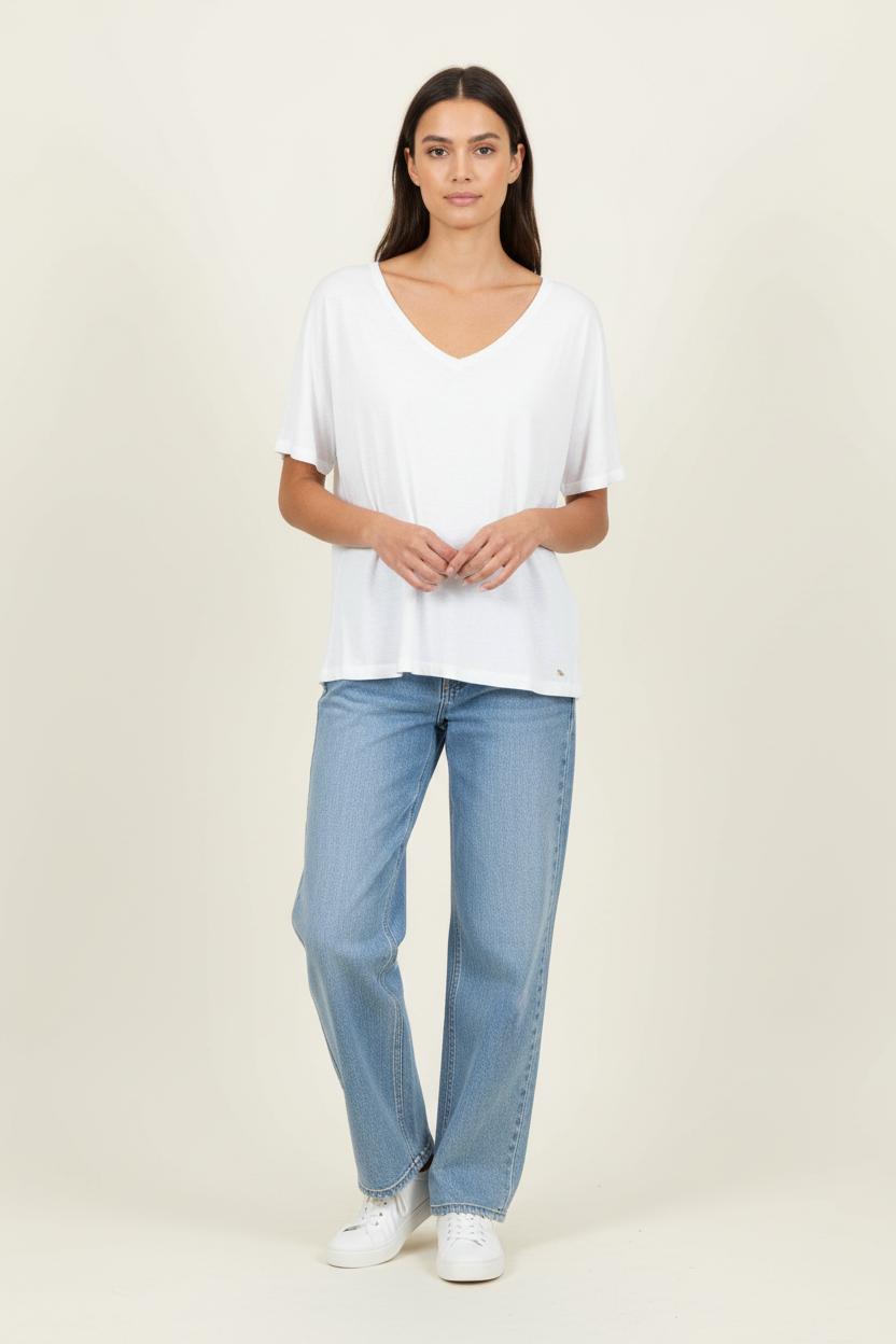 Top blanc en lin Des petits hauts, taille XL/42 – élégance minimaliste et confort absolu. Confectionné en 100% lin, ce haut se distingue par sa matière naturelle, sa coupe ample et son élégant col V, offrant fraîcheur et douceur. Parfait pour une journée estivale, que ce soit pour une promenade en ville ou un déjeuner en terrasse.