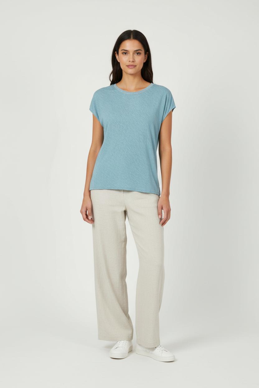 Top bleu Sud express en taille M/38, confectionné dans une matière fluide et légère, idéal pour une allure sobre et élégante. Composé à 94% de viscose, 5% d’acrylique et 1% de fibre métallisée, ce haut se distingue par son col rehaussé d’un discret liseré scintillant, apportant une touche singulière à un basique intemporel. Parfait pour une journée au bureau ou une sortie décontractée entre amis, ce top s’adapte avec raffinement à toutes les occasions du quotidien.