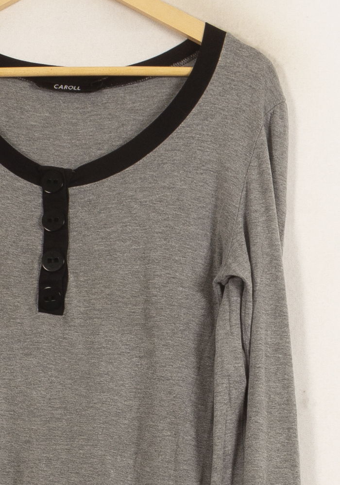Top à manches longues Caroll gris XXL/44, un modèle élégant signé Caroll, parfait pour une silhouette moderne et décontractée. La matière souple et douce offre un confort optimal, tandis que l’encolure ronde rehaussée d’un liseré noir contrastant et d’une patte de boutonnage ajoute une note contemporaine à ce basique revisité. Idéal pour un look chic lors d’une journée de travail ou pour un déjeuner en ville.