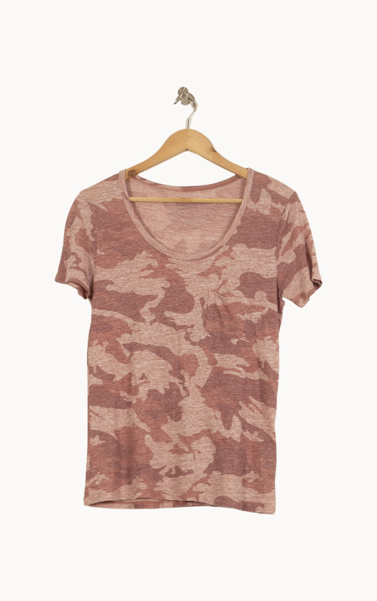 T-shirt imprimé camouflage multicolore Zadig&Voltaire, taille XS/34, marque emblématique reconnue. Confectionné dans une matière légère et douce, ce top se distingue par son motif camouflage aux teintes subtiles et sa petite poche plaquée à la poitrine, offrant un style à la fois urbain et raffiné. Idéal pour une journée décontractée entre amis ou pour une allure tendance lors d'une sortie en ville.