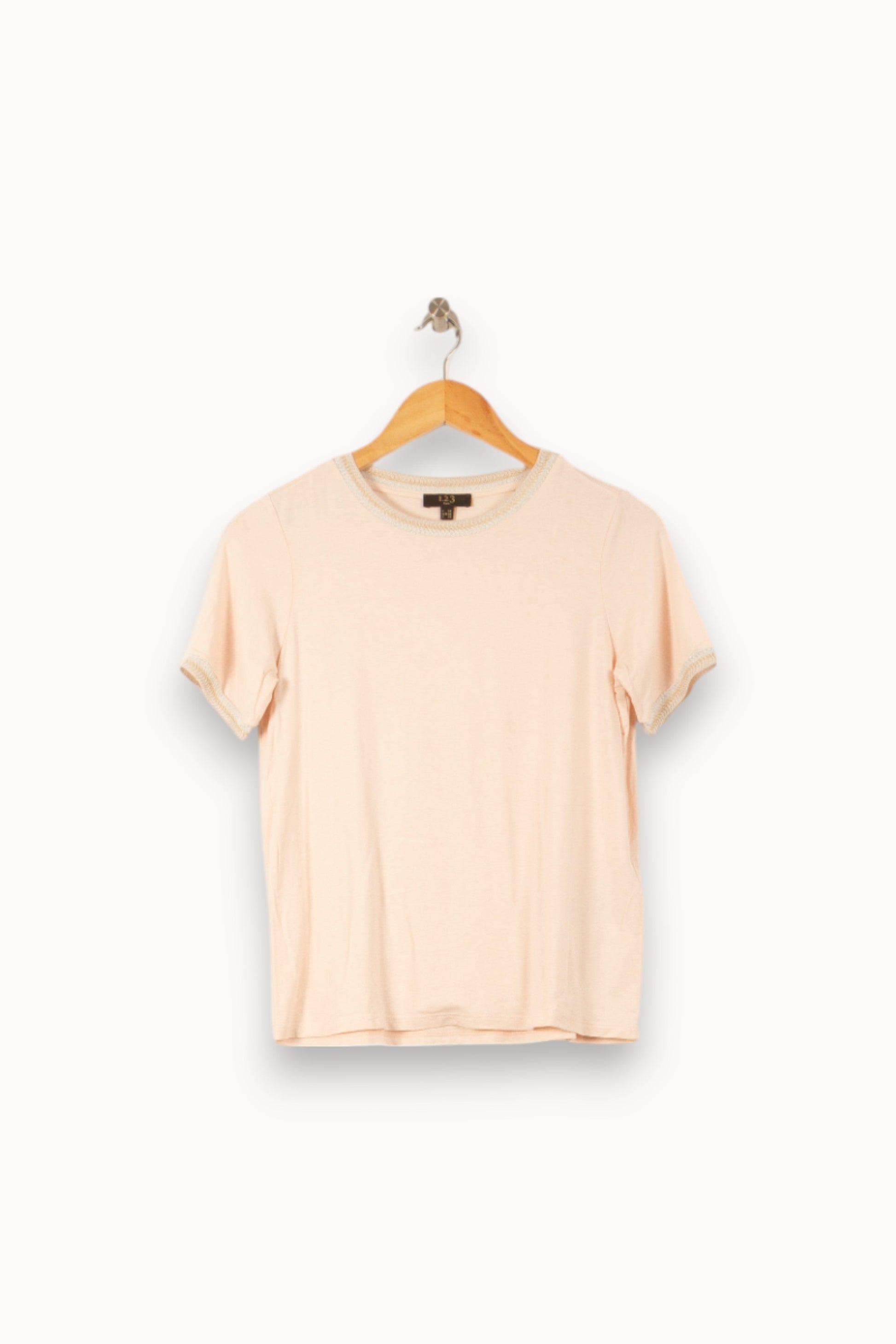 Top rose Maison 123 en taille S/36 : ce t-shirt à manches courtes affiche une coupe classique et une teinte douce, parfaite pour la saison. Sa matière légère et souple promet un confort au quotidien, tandis que les finitions discrètes au col rond et aux manches apportent une touche raffinée et unique à ce basique intemporel. Ce top s’accorde idéalement à un jean ou une jupe pour une sortie décontractée entre amis ou une journée au bureau.