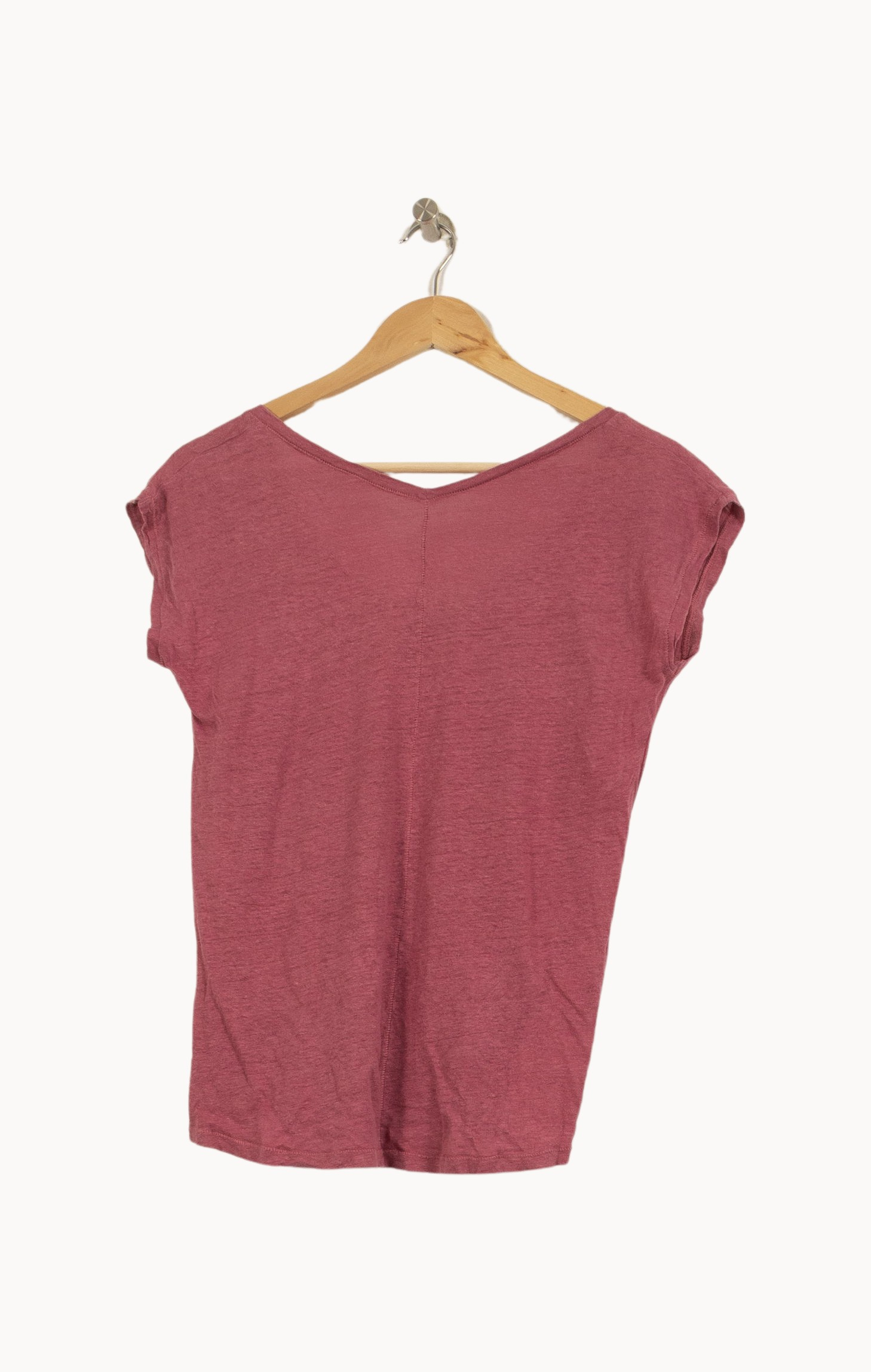 Top rose Comptoir des Cotonniers, taille S/36, coupe fluide et col en V. Confectionné dans un tissu léger, ce top se distingue par sa simplicité élégante et son tombé naturel. Idéal pour une journée estivale, associé à un jean ou une jupe pour une allure décontractée et raffinée.