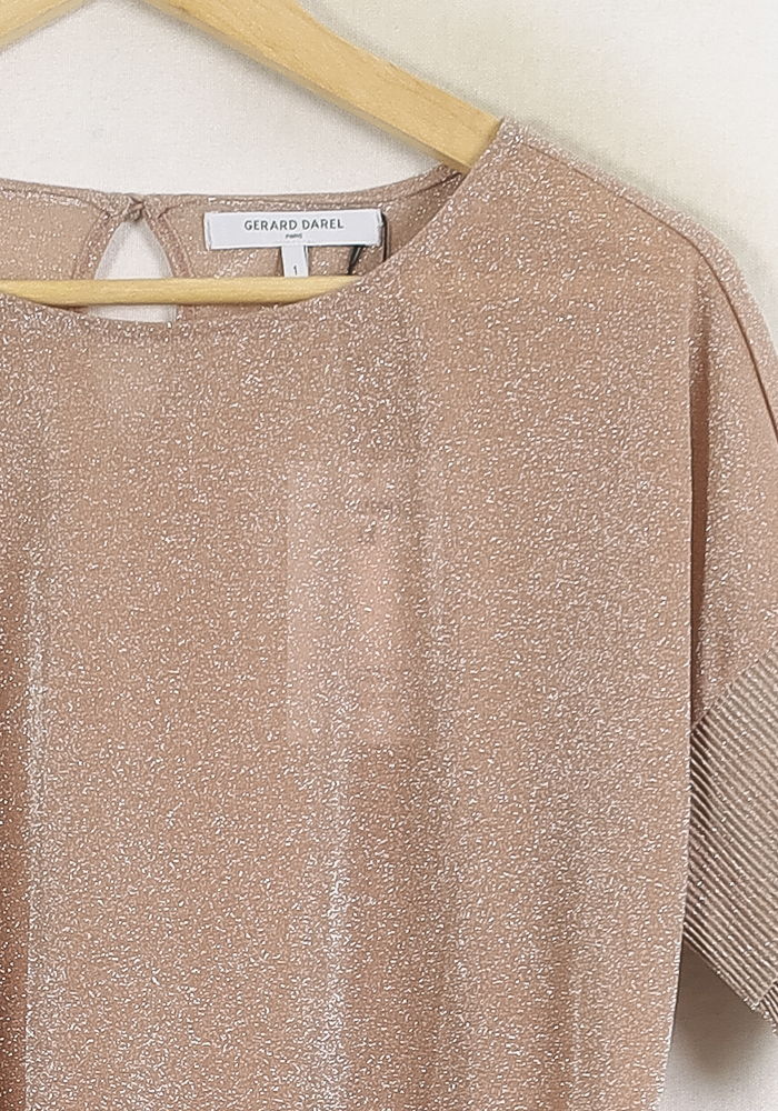 Top rose à manches courtes Gerard Darel taille S/36 – un vêtement raffiné à la coupe droite et au tombé délicat, idéal pour apporter une touche d’élégance discrète à votre dressing. Confectionné dans une matière légèrement irisée, ce top se distingue par ses manches aux détails plissés qui offrent un effet texturé subtil, rendant la pièce unique et sophistiquée. Parfait pour une journée de travail ou un dîner entre amis, il s’adapte aisément à toutes les occasions où élégance rime avec simplicité.