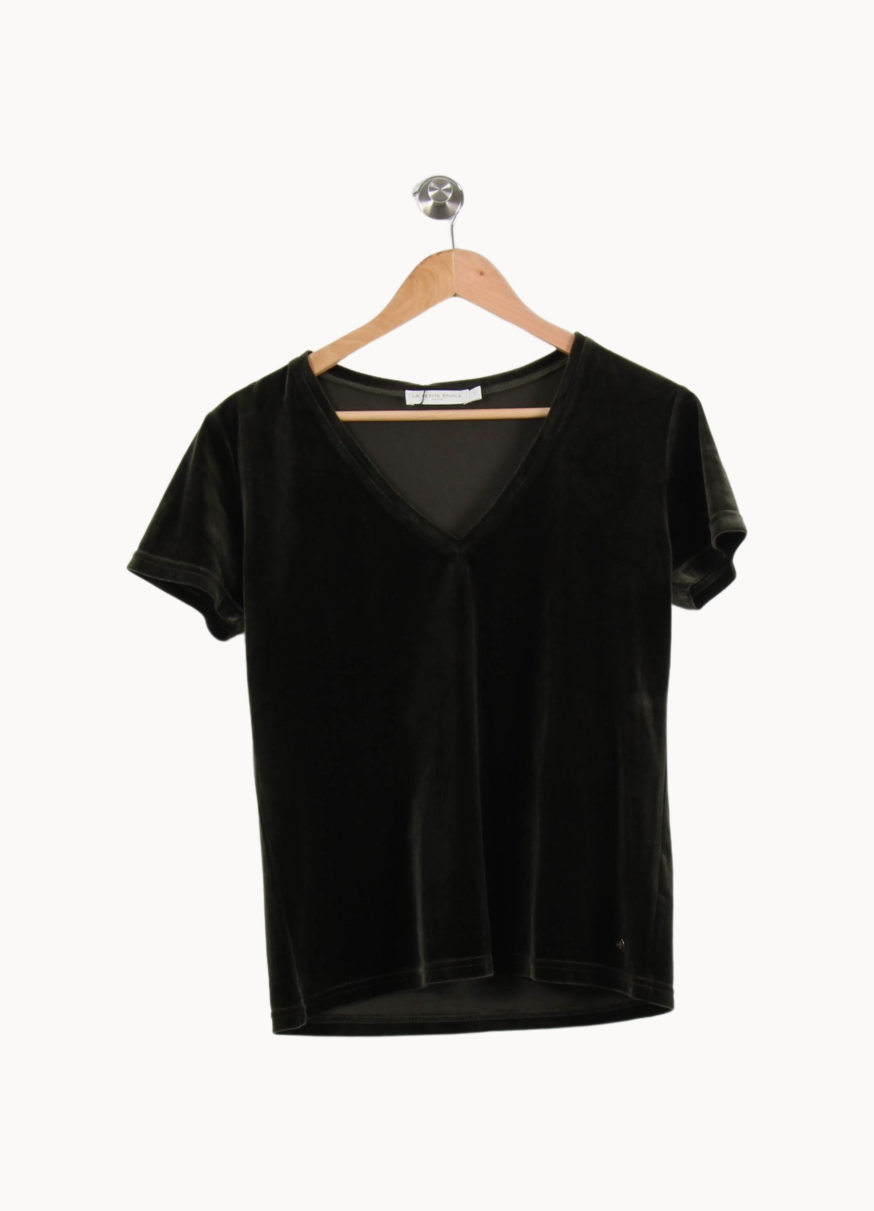 Top vert en velours à manches courtes La Petite Etoile, taille S/36 – un essentiel chic parfait pour rehausser vos looks du quotidien. Confectionné dans une matière velours douce et raffinée, ce top séduit par son toucher soyeux et son tombé lisse ; l’encolure en V apporte une touche féminine discrète et un raffinement intemporel. Ce modèle est idéal pour sublimer une tenue de soirée ou accompagner un jean lors d’un dîner convivial entre amis.