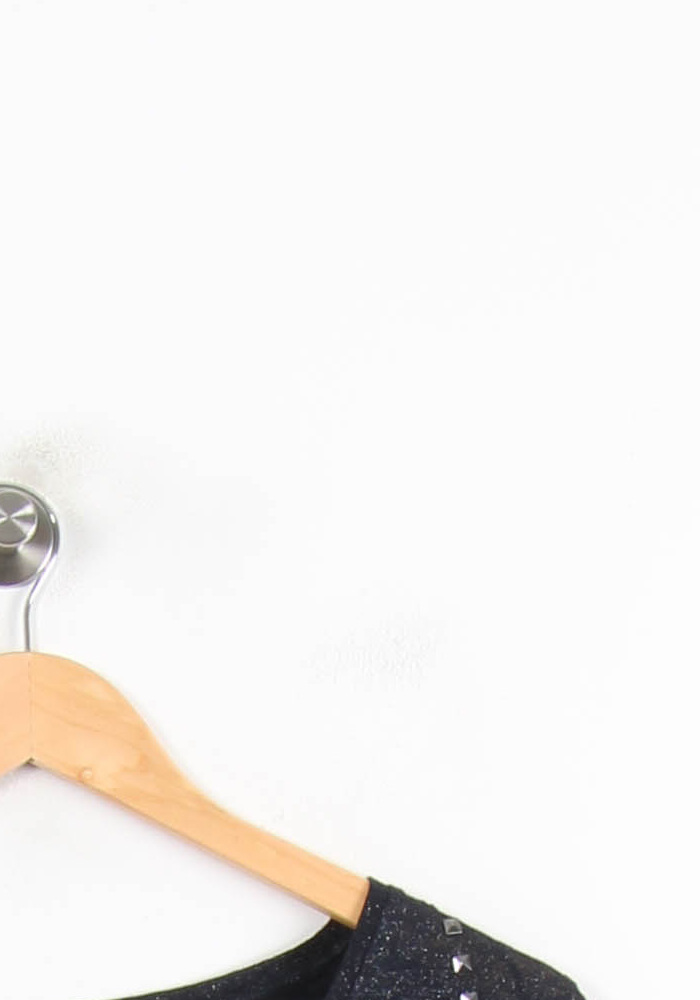 Top bleu IKKS taille XL/42, avec manches longues, col roulé et col en V, parfait pour un look élégant et structuré. C’est la touche finale d’une matière fluide et d’une brillance efficace, les petits clous décoratifs utilisés apportant une touche moderne et sophistiquée. C'est la solution idéale pour accompagner votre dîner pendant votre séjour et apporter une touche chic à votre voyage.