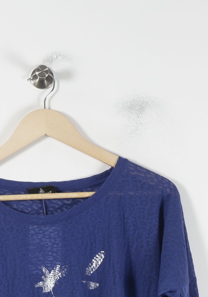 Haut bleu à motif floral One Step, taille Confectionné à partir de 27 % de coton, ce haut est fini avec une matière texturée qui redessine le motif floral pour lui conférer une touche élégante et contemporaine. Parfait pour une tenue de bureau formelle ou un après-midi entre amis.