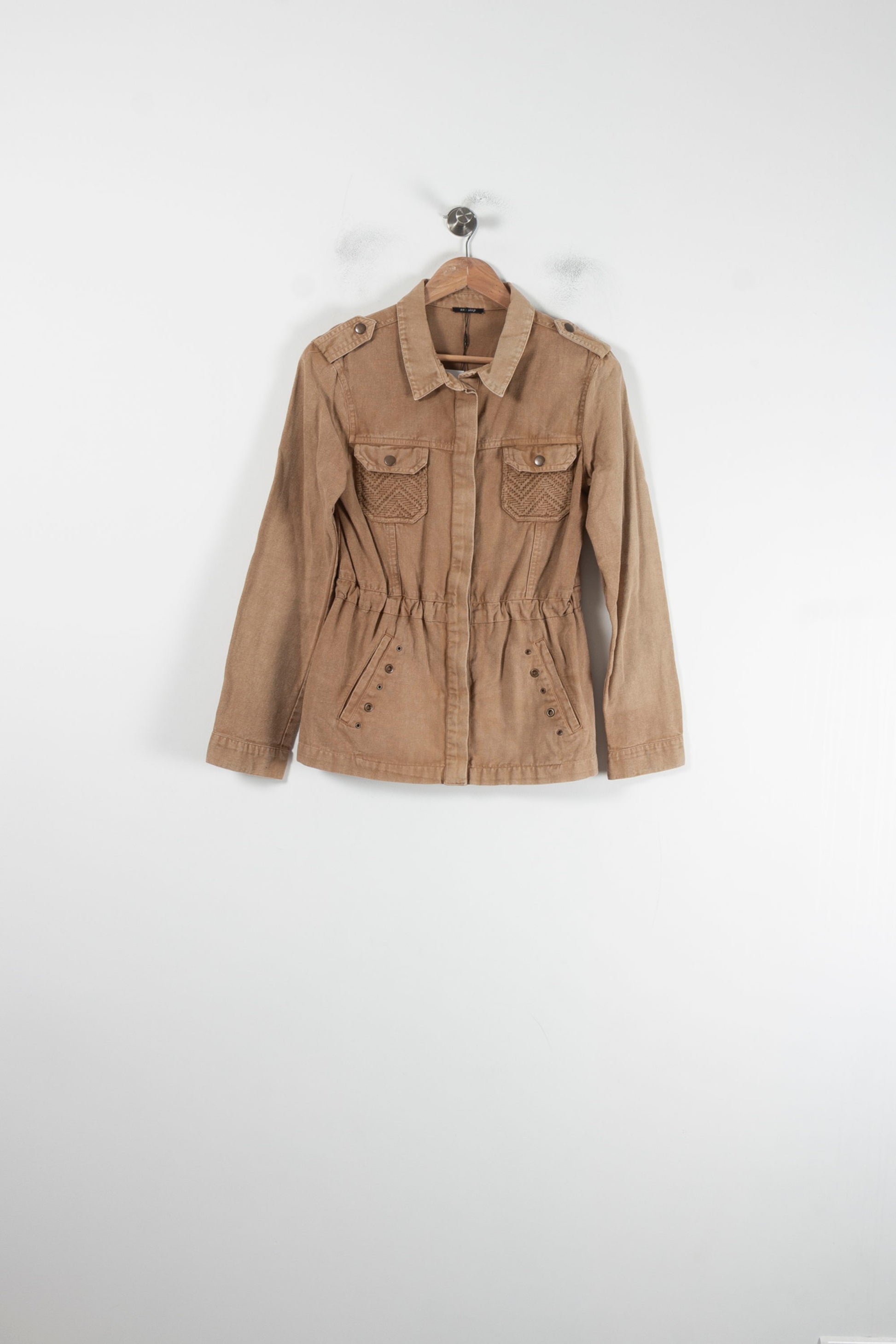 Veste femme One Step, taille S/36, coloris jaune, à la coupe structurée et moderne. Confectionné en 100% coton, le modèle présente des finitions soignées, notamment des boutonnières arrondies, des détails raffinés et des ornements délicats, pour une touche de subtilité originale. Idéal à porter au quotidien, pour une ballade au village ou un rendez-vous décontracté.