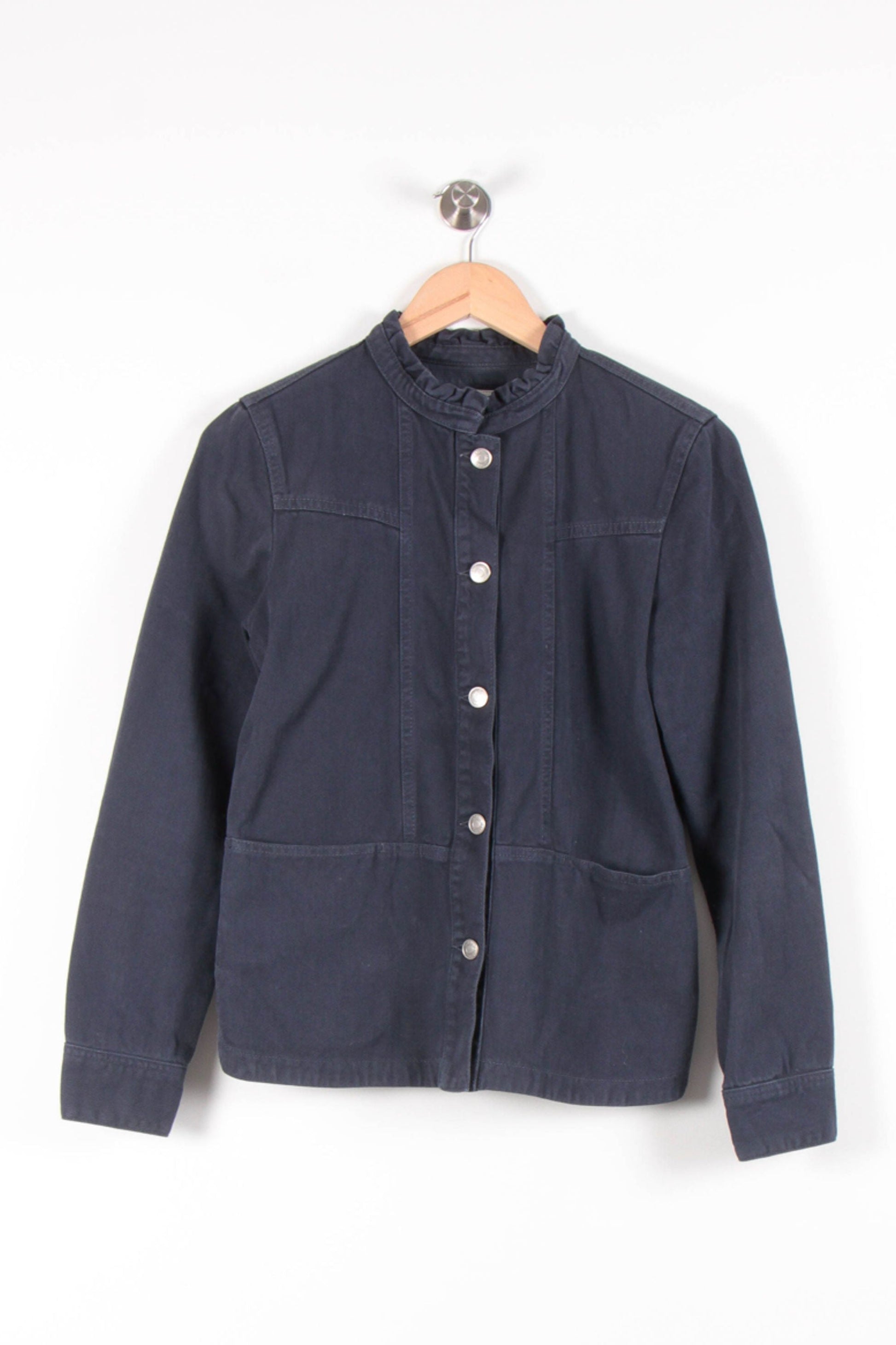 Veste bleu Caroll en taille M/38, modèle à col rond orné sur les devants, fermeture à boutons argentés. Le processus de finition s'effectue par contact direct, il se distingue par l'utilisation de grandes plaques et la délicatesse finale du collet avec lequel une note est affinée et originale. Idéal pour un voyage pendant le trajet ou une mission pendant le contrat.