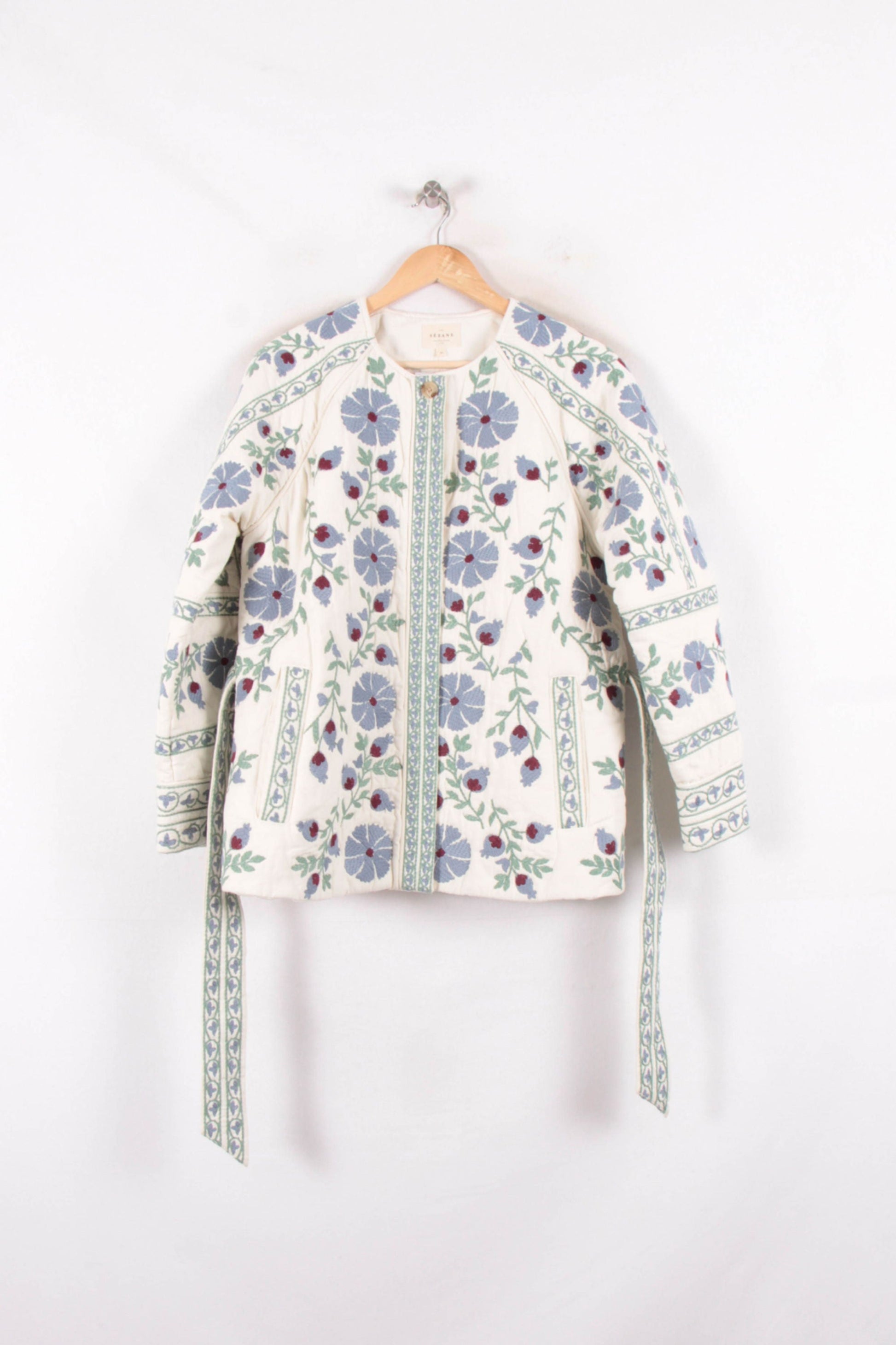 Veste Brodée Blanche et Bleue - Taille L/40 de la marque Sézane