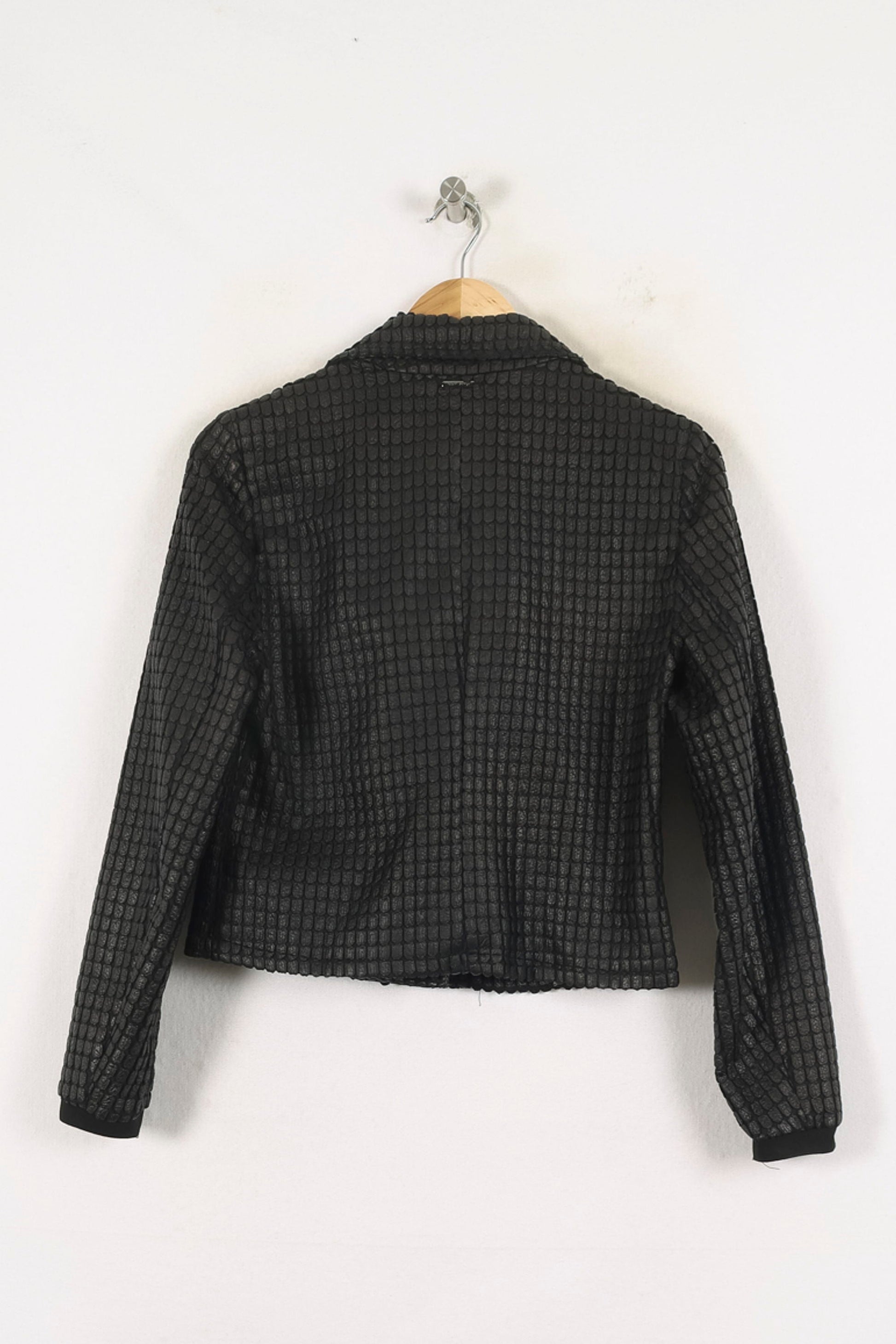 Veste noire One Step taille M/38, au design contemporain et élégant, idéale pour sublimer votre silhouette. Sa matière structurée à effet relief quadrillé apporte une touche d’originalité raffinée, tandis que la fermeture zippée asymétrique souligne une allure moderne et tendance. Parfaite pour accompagner un look de bureau sophistiqué ou pour rehausser une tenue de soirée chic.