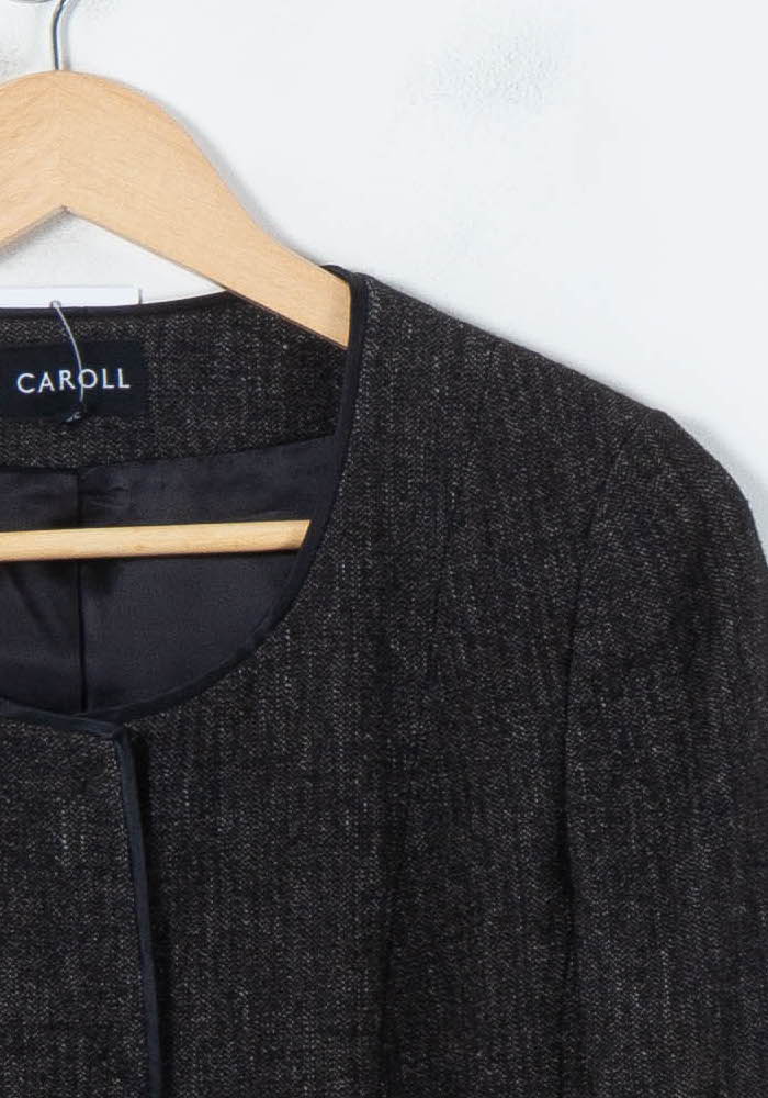 Veste courte Caroll en noir, taille M/38, à la coupe élégante et épurée, idéale pour une allure sophistiquée. Confectionné avec un mélange de 50 % lin, 45 % lin et 5 % polyamide, avec une double couche de 100 % polyamide et une légère structure agrégée ; les conclusions finales sont tirées autour de votre conférence et de votre style contemporain. La tenue idéale pour une réunion professionnelle : une allure élégante, une tenue formelle et raffinée, et un repos confortable.