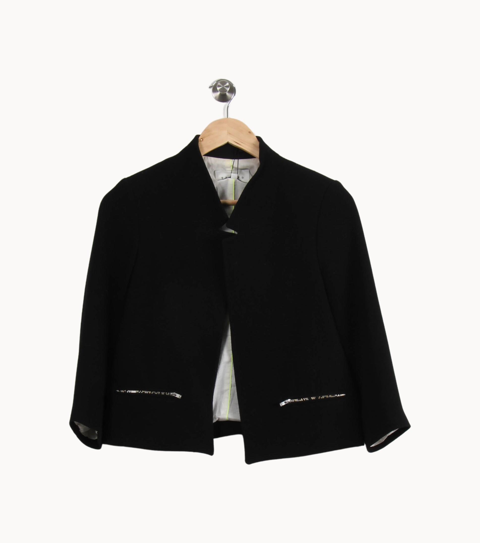 Gilet noir Sandro, taille M/38, élégant et structuré, idéal pour sublimer toutes les silhouettes. Confection d'une matière visible à la fois fluide et double, avec une coupe simple dans l'assemblage et la distinction des détails des raffinements de la ferronnerie, ainsi qu'une touche contemporaine et une sophistication dans l'ensemble. Parfait pour une réunion professionnelle ou un dîner en soirée, pour une ambiance chic et décontractée.
