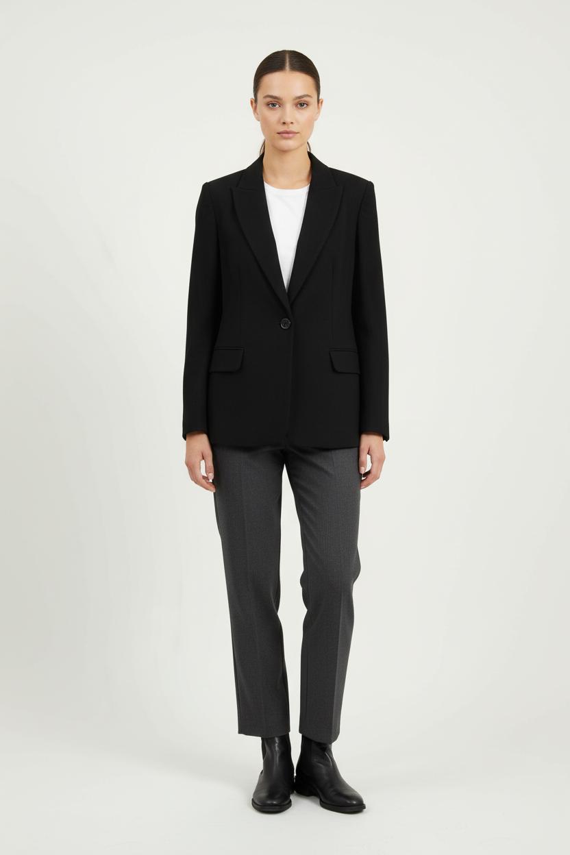 Veste noire élégante Marina Rinaldi, taille XXL/44, au style intemporel qui sublime la silhouette avec sa coupe structurée. Cette pièce se distingue par sa matière fluide et son fini mat, ses revers précis et ses poches à rabat, conférant raffinement et sobriété à l’ensemble. Parfait pour des rendez-vous professionnels ou des occasions habillées où élégance et confort sont de rigueur.